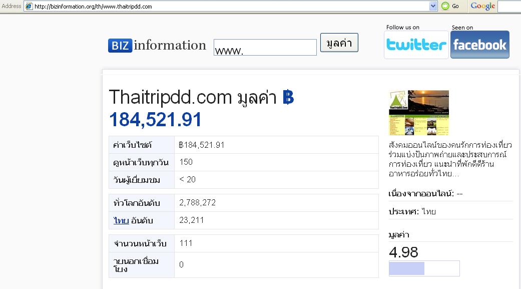 ขอบคุณครับคุณหมูน้อย ผมจะได้รู้ว่า เวปผมมีค่าเท่าไรครับ
