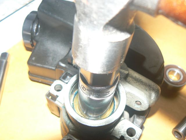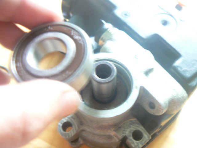 ถ้าต้องการเปลี่ยนแค่ลูกปืน สามารถหาปลอกเหล็กมาสวมแล้วใช้ฆ้อนเคาะออกไปทางด้านท้ายซึ่งมีขนาดเล็กกว่าจะถอดได้ง่ายครับ แล้วจึงเอาลูกปืน เบอร์ 6203 มาใส่แทน