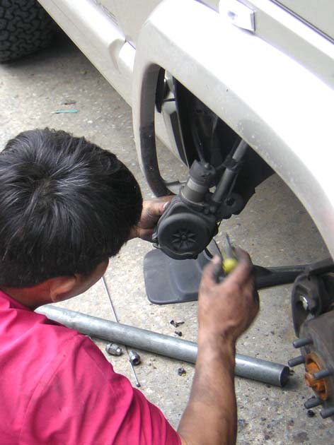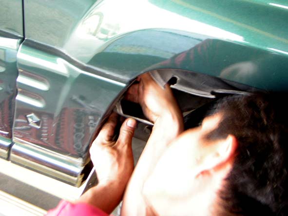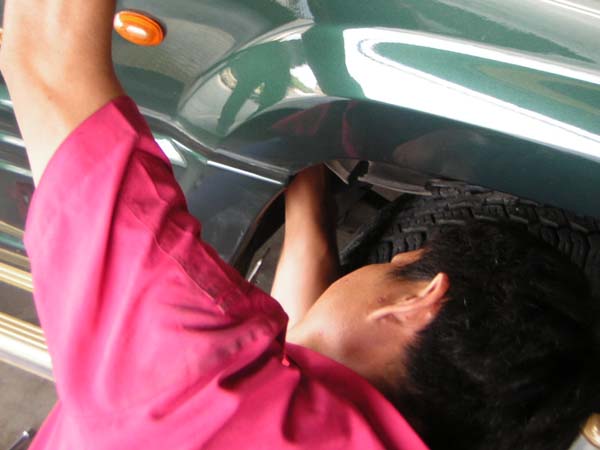 2. เปิดซุ้มล้อ ด้านหน้าขวา(ข้างคนขับ) จะมีกริ๊ปล๊อคอยู่ ค่อยๆแกะมันออกครับ