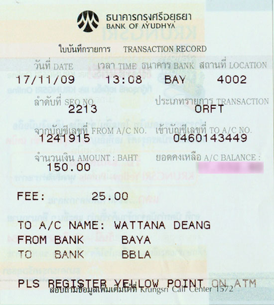 โอนเงินให้พี่น้อย บางนาแล้วนะครับ 150.00 บาท เมื่อกี้นี้เอง เจ้าหน้าที่แจ้งว่า นามสกุล แดงศรี (ไม่มีวัฒน์) แต่น่าจะถูกต้องแล้วใช่มั๊ยคร๊าบบบบบบบบบบบ