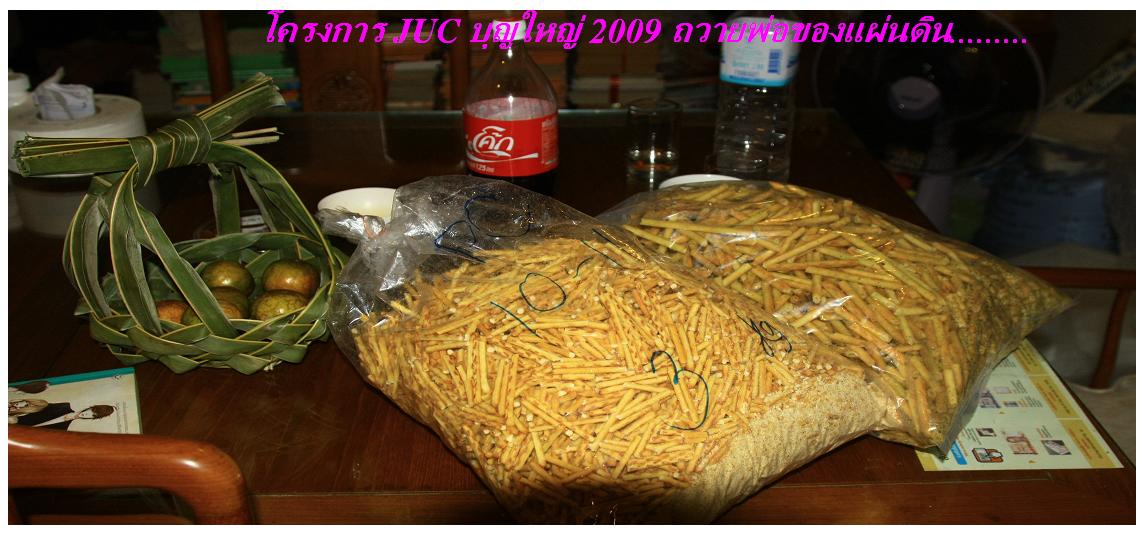 ด้วยกุศลบุญครั้งนี้ขออำนาจสิ่งศักดิ์สิทธิทั้งปวง จงดลบันดาลให้ท่านท่านเจ้าของโรงงานขนม ที่อนุเคราะห์ เสมอมา กับกิจกรรม JUC ตลอดจนครอบครัว ให้มีสุขภาพแข็งแรง มีแต่ความมั่งคั่งร่ำรวยด้วยความสุข.....เจริญก้าวหน้า กิจการต่างๆๆก็เจริญรุ่งเรือง ยิ่งขึ้นๆๆไปด้วยเทอญ………..