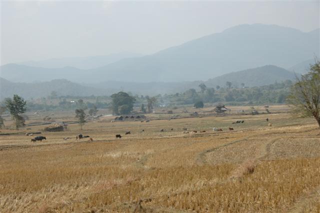 ผ่านทุ่งนาหลังจากเก็บเกี่ยวแล้ว ก็กลายเป็นทุ่งซาวาน่าชั่วคราว รอจนกว่าพระพิรุณโปรยปราย จึงจะเริ่มเพาะปลูกอีกครั้ง