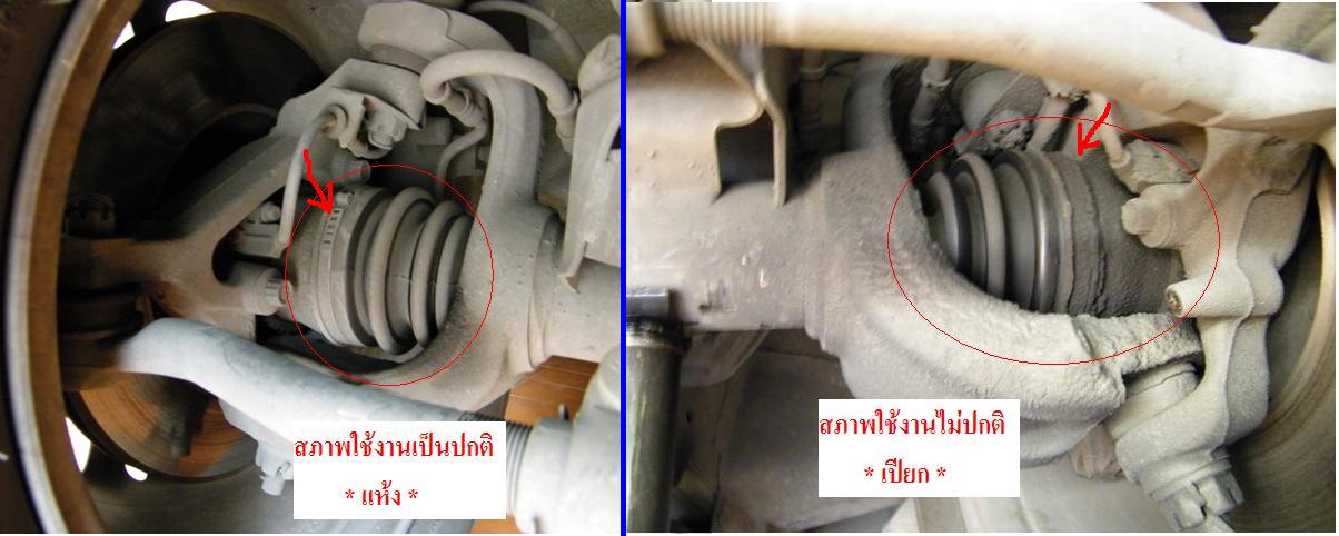 แสดงภาพเปรียบเทียบให้ดูถึงการใช้งาน ของลูกยางหุ้มเพลาหน้า ซ้าย-ขวา ที่เริ่มแสดงถึงว่าหากปล่อยใว้นาน อาจจะเสียตังซ่อมเยอะ.......