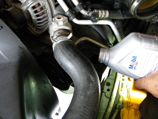 ประกอบท่อกลับเข้าดังเดิม เลื่อนกิ๊บล๊อคเข้าตรงตำแหน่งเก่า ทำความสะอาดน้ำมันที่เปื่อนๆให้หมด แล้วเติมน้ำมันพาวเวอร์ของโมพาร์ให้ได้ตามขีดกำหนด สตาร์ทเครื่องยนต์ทิ้งใว้ หมุนพวงมาลัยไป-มา (ซ้าย-ขวา) 4-5 ครั้ง แล้วเติมน้ำมันเพิ่มลงไปให้ได้ระดับ มองดูจนหมดฟอง ปิดฝาให้เรียบร้อยก็เป็นอันเสร็จสิ้นกระบวนการ