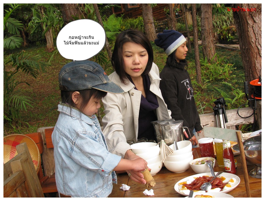 เดินกลับมาที่บ้านวิวน้ำ.......สายแล้ว ผบ.เสร็จพอดี..........ได้เวลาอาหารเช้าแล้ว