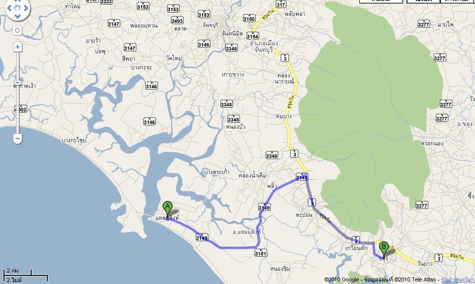เส้นทางการขับรถไปยัง จากแหลมสิงห์ ไป อ.ขลุง ประมาณ 25 กม.