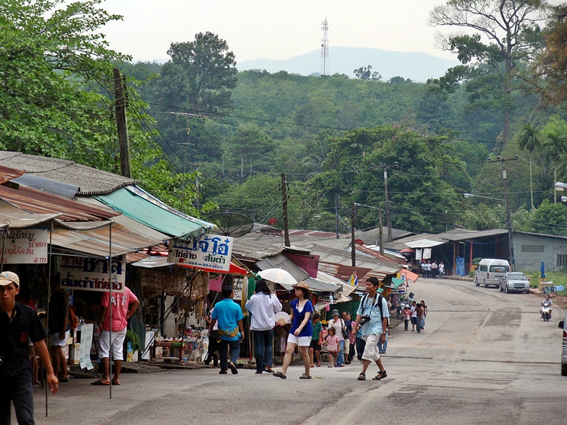ทางเข้ามีของขายมากมาย สิ่งที่ขาดไม่ได้ ที่ต้องติดมือกันขึ้นไปคือ อาการปลา เป็นถั่วฝักยาว ขายกำละ10 บาท