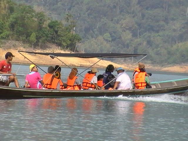 เราใช้เรือ แบบนี้ประมาณ 2 ลำเดินทางในเขื่อนรัชชประภา จำนวนคนอยู่ที่ประมาณ 24 คนสบายๆครับ