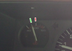 ขีดสีเขียวคือจังหวะที่ พัดลมไฟฟ้า หยุดทำงาน และถ้ารถวิ่ง ( 50 km >) ความร้อนจะอยู่ที่ขีดสีเขียว(เลยขีดแรกมานิดหน่อย)