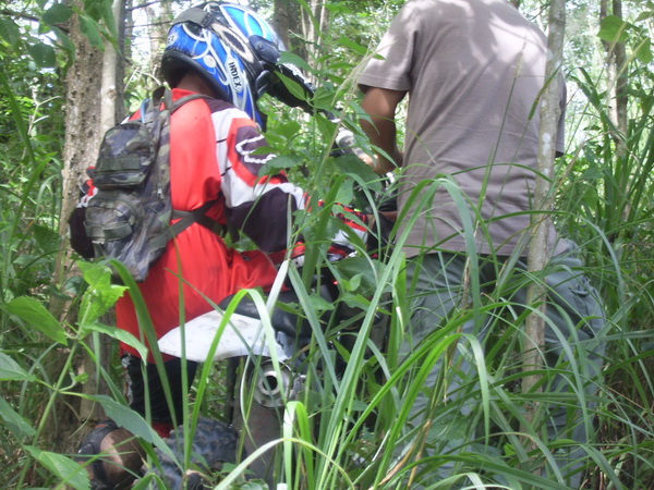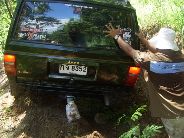 พี่แกบิดไปเข้าง่ามต้นไม้ไปต่อไม่ได้ครับต้องดึงรถออกมา