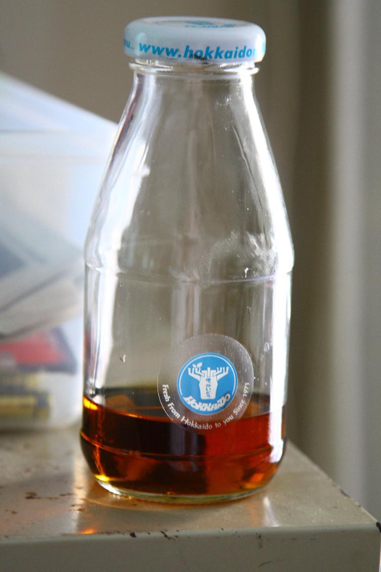 จับชิ้นส่วนตัวอย่างยาว 1.2 ซม ที่พนักงานขายร้านนนต์อะไหล่ตัดมาให้ จับแช่ใส่ขวด ฮอกไกโด เรย อิอิ