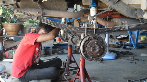 รถของน้าอุ้มอัมพวากำลังให้ช่างวุธเปลี่ยนเฟืองสี่แปดแปดเพื่อที่จะเข้าสี่กั๊ก