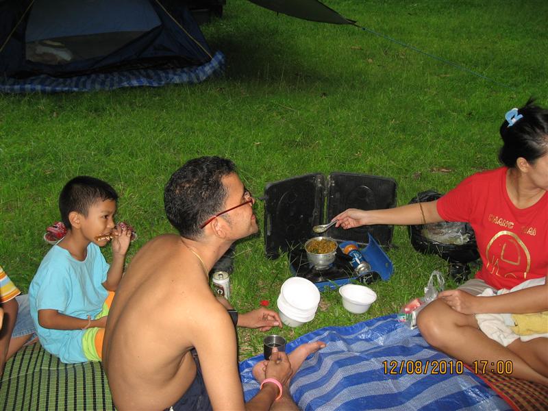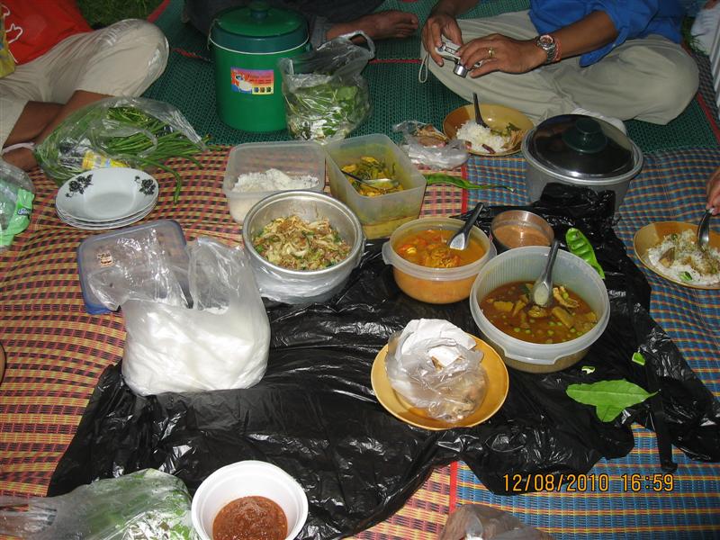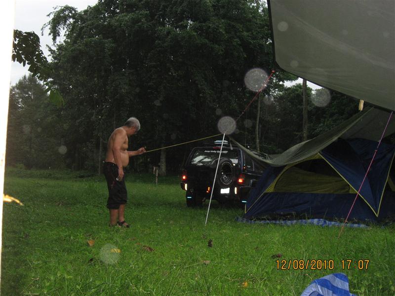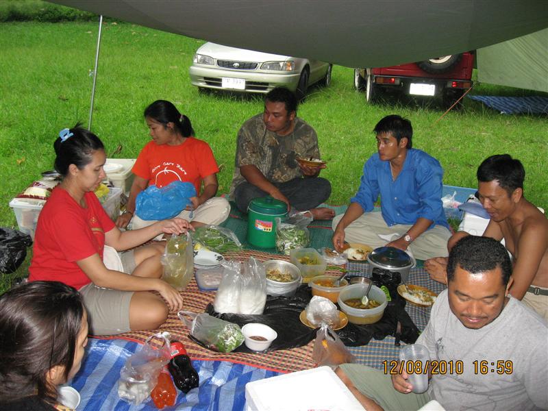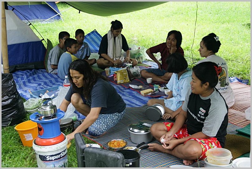 อาหารใต้เต้นท์ท่ามกลางสายฝน