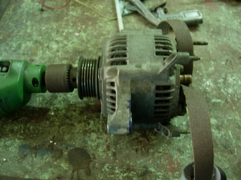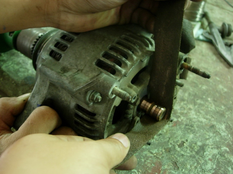 ด้านพูเล่..ใช้สว่านจับแกนกลาง..ด้านหัวไดก็สอดกระดาษทรายเข้าไป