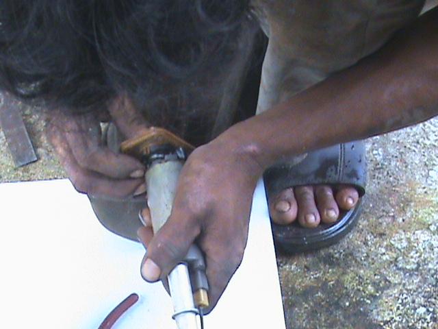 แล้วต่อสายไฟ เอาปั๊มจุ่มลงครับ ปรากฏว่า ทีเดียวติดครับ ทีเดียวเท่านั้น ไม่ต้องเบิ้ลเลย