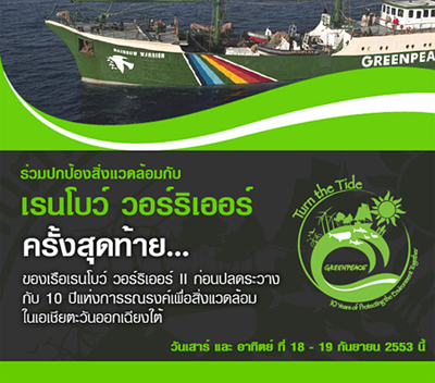ช่วงบ่ายของอาทิตย์ที่ผ่าน เสียงโทรศัพท์ดังขึ้นระหว่างที่ผมกำลังง่วนอยู่กับที่ทำงาน " เรือเรนโบ วอร์ริเออร์ กลับมาอีกแล้ว " เป็นปลายเสียงจากผบ.สส. ที่แจ้งข่าวที่ได้รับมา " โอเค ไว้ วันไหนว่างเราไปกัน " เป็นคำตอบรับแบบไม่ต้องคิดมาก