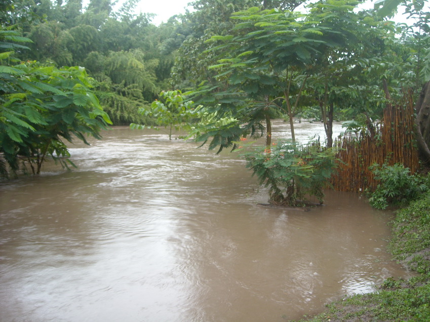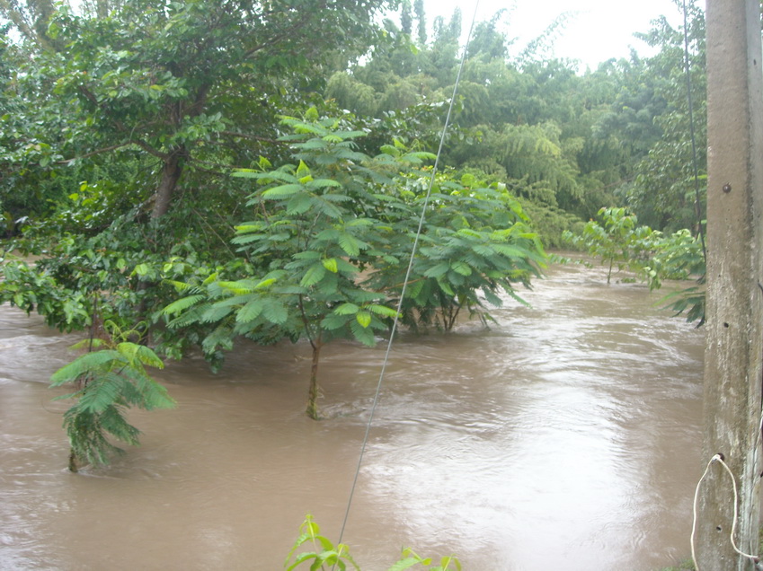 วิกฤตน้ำท่วมสวนผึ้ง ครั้งนี้กระทบแหม่มอย่างหลีกเลี่ยงไม่ได้ น้ำป่าจากเทือกเขาตะนาวศรีได้ไหลทะลักเข้าสู่ลำภาชี แม่น้ำสายหลักของสวนผึ้ง เส้นทางคมนาคมส่วนใหญ่ตั้งแต่บ้านพุระกำมาจนถึง บ้านบ่อหวี ขาดการติดต่อจากคนภายนอก (ข่าวช่อง 3) ฝนได้ตกลงมาอย่างไม่ขาดสายตั้งแต่วันที่ 1 ถึงวันนี้ฝนยังไม่มีทีท่าว่าจะหยุดตก ความเสียหายของแหม่มครั้งนี้กระท่อมริมน้ำที่ปลูกไว้ น้ำได้เอ่อเข้าบ้าน ถ้าฝนไม่หยุดตกวันนี้คาดว่าจะมิดหลังคา ลานกางเต็นท์ริมน้ำที่กลุ่มนกขมิ้นเคยมากาง ได้ท่วมลานนี้สูงกว่า 3 เมตร ต้นมะพร้าวที่ปลูกคาดว่าจะเสียหายทั้งหมด ความเสียหายของแหม่มยังไม่ได้ครึ่งของพี่น้องที่อยู่ช่วงบน ลองมาดูสภาพน้ำที่ไหลผ่านหน้าบ้าน