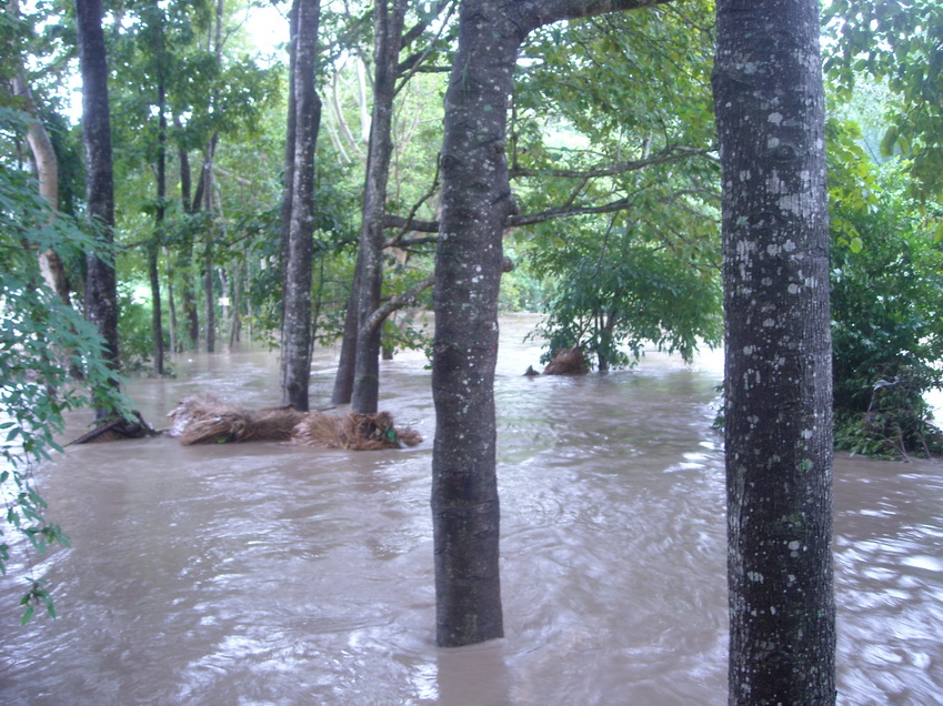 วิกฤตน้ำท่วมสวนผึ้ง ครั้งนี้กระทบแหม่มอย่างหลีกเลี่ยงไม่ได้ น้ำป่าจากเทือกเขาตะนาวศรีได้ไหลทะลักเข้าสู่ลำภาชี แม่น้ำสายหลักของสวนผึ้ง เส้นทางคมนาคมส่วนใหญ่ตั้งแต่บ้านพุระกำมาจนถึง บ้านบ่อหวี ขาดการติดต่อจากคนภายนอก (ข่าวช่อง 3) ฝนได้ตกลงมาอย่างไม่ขาดสายตั้งแต่วันที่ 1 ถึงวันนี้ฝนยังไม่มีทีท่าว่าจะหยุดตก ความเสียหายของแหม่มครั้งนี้กระท่อมริมน้ำที่ปลูกไว้ น้ำได้เอ่อเข้าบ้าน ถ้าฝนไม่หยุดตกวันนี้คาดว่าจะมิดหลังคา ลานกางเต็นท์ริมน้ำที่กลุ่มนกขมิ้นเคยมากาง ได้ท่วมลานนี้สูงกว่า 3 เมตร ต้นมะพร้าวที่ปลูกคาดว่าจะเสียหายทั้งหมด ความเสียหายของแหม่มยังไม่ได้ครึ่งของพี่น้องที่อยู่ช่วงบน ลองมาดูสภาพน้ำที่ไหลผ่านหน้าบ้าน