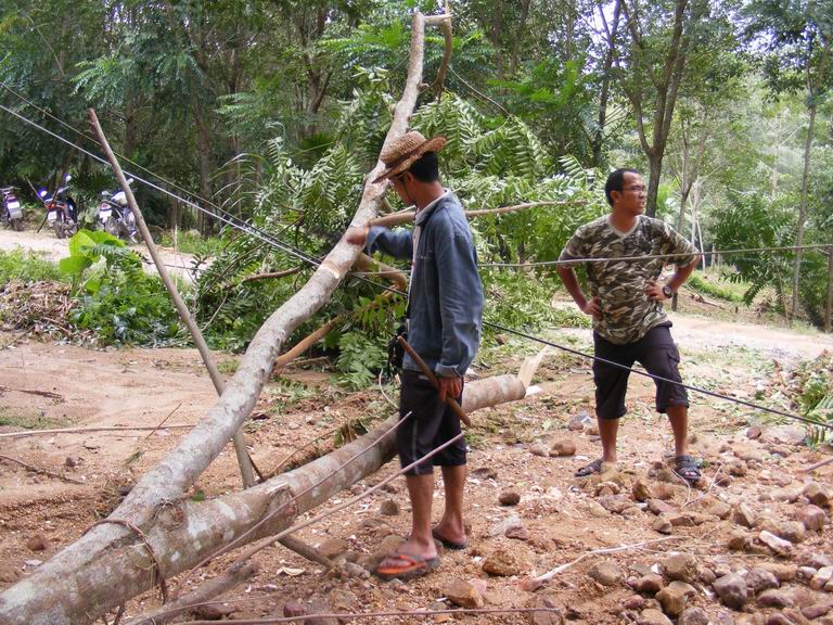 หนุ่มไฟฟ้า เห็นต้นไม้ล้มทับสายไฟไม่ได้ เอ้าต้องช่วยกันหน่อย