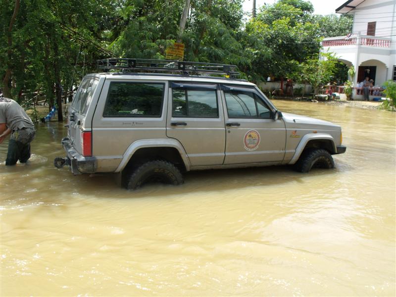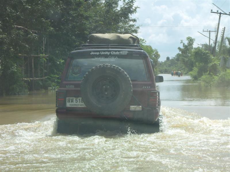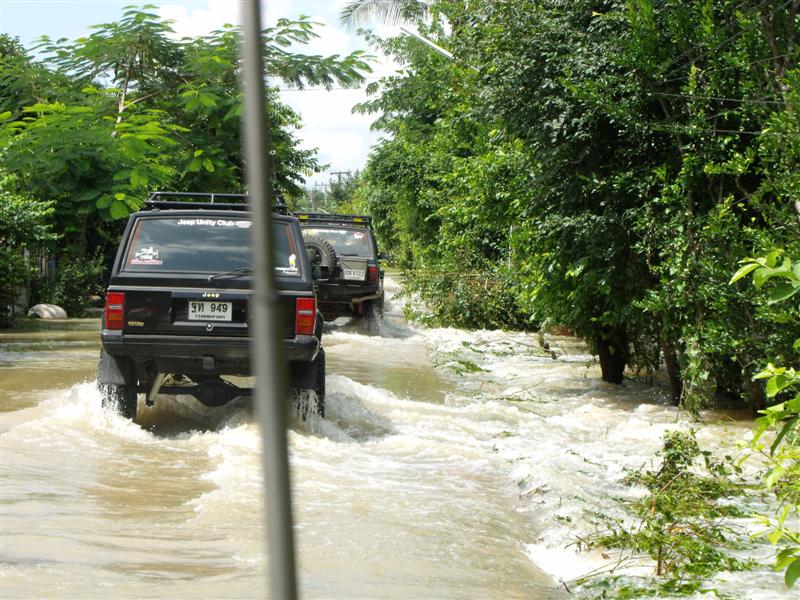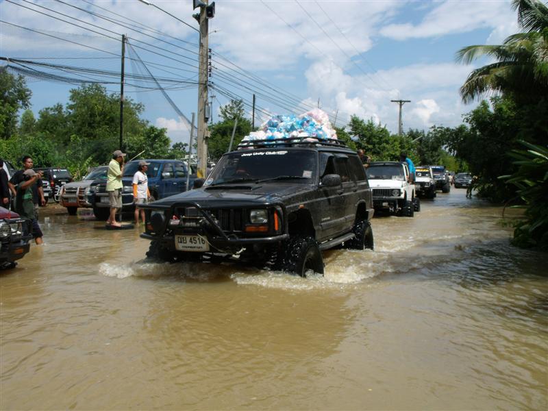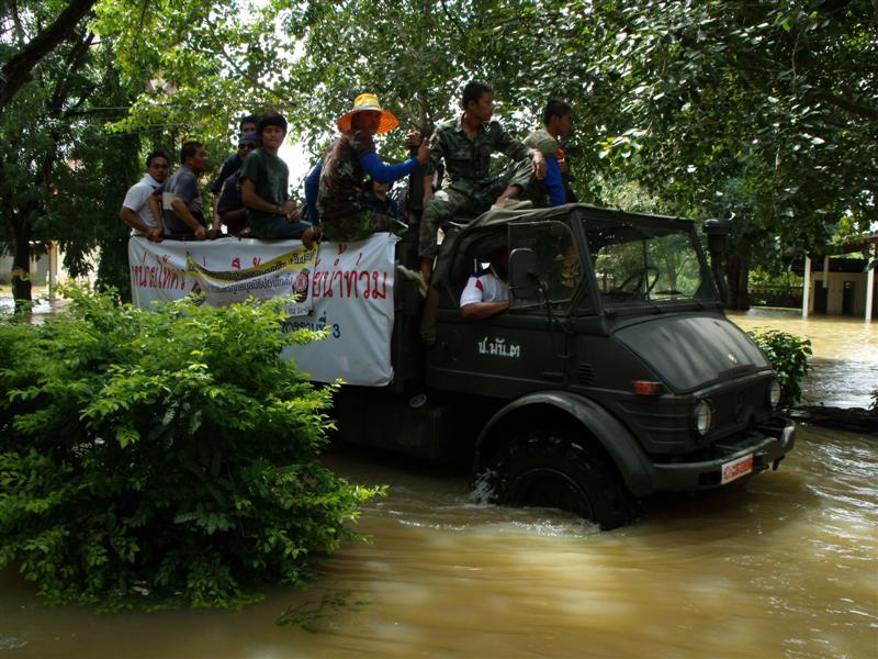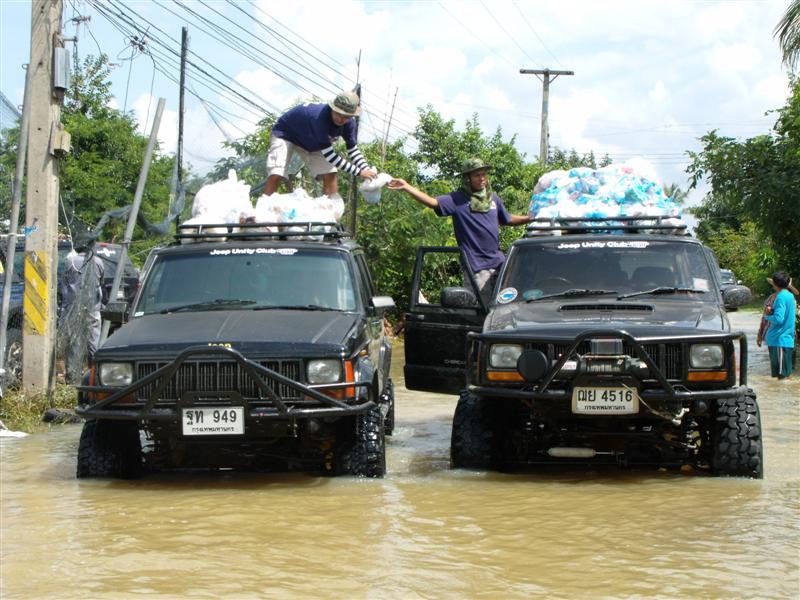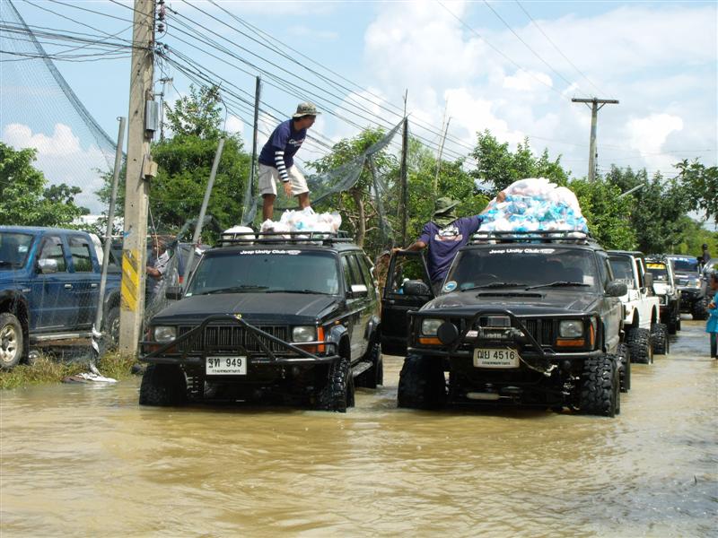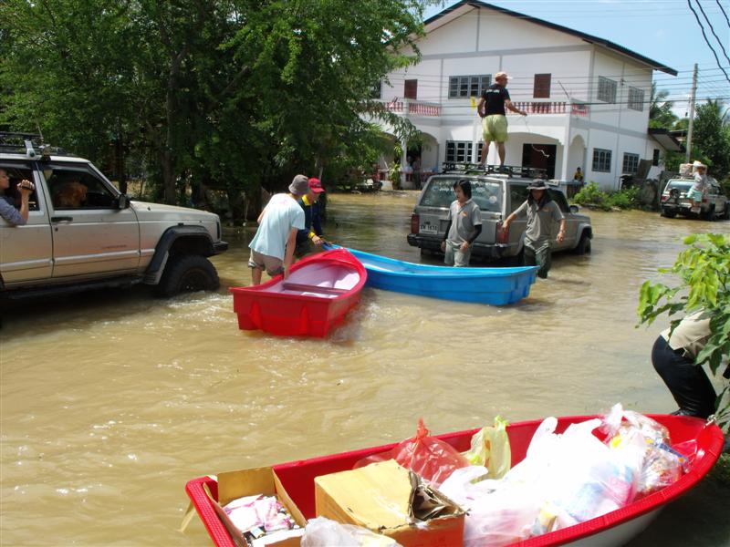 จัดส่งไป อีก 2 คัน ช่วยเหลือผู้ประสบภัย กลายเป็นเรือ ระยะทางประมาณ 2 กม. ไปถึงจุดศูนย์กลาง "ศาลาการเปรียญ" ภายในวัด ซึ่งชาวบ้านมารวมตัวกันอยู่