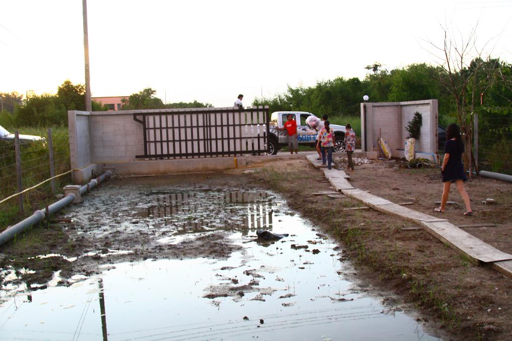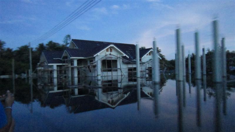 เริ่มด้วยบ้านน้องบอม .....เสาเอกขึ้นไปแล้วแต่บ้านยังไม่ขึ้น น้ำท่วมซะก่อนน่าเห็นใจจริงๆ