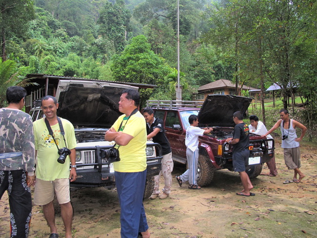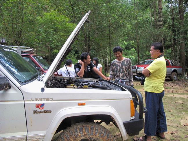 ข้างบ่าวๆ จับกลุ่มคุยกันที่หัวรถ..jeep..
