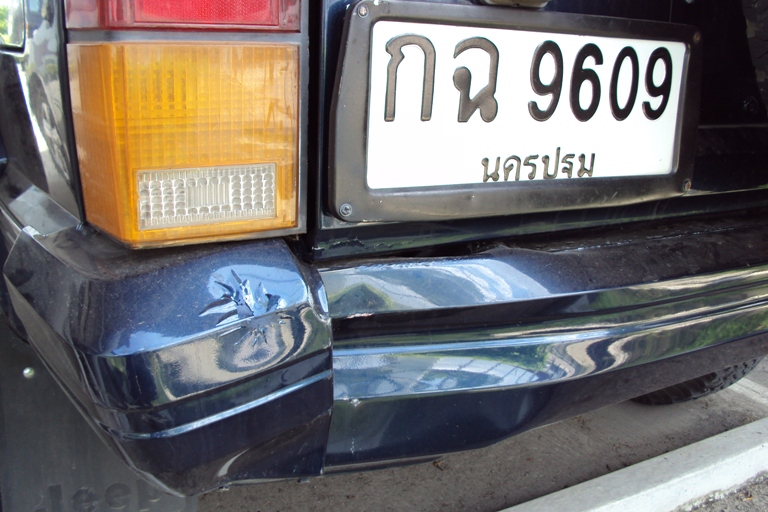 ๑ จอดรถไว้เฉย ๆ โดยชนท้าย แต่ไม่เป็นไร ซ่อมได้ ฟรี พี่ที่รู้จักเอาไปทำให้ เสียค่าแรงเป็นสิงห์ ๑ ลัง