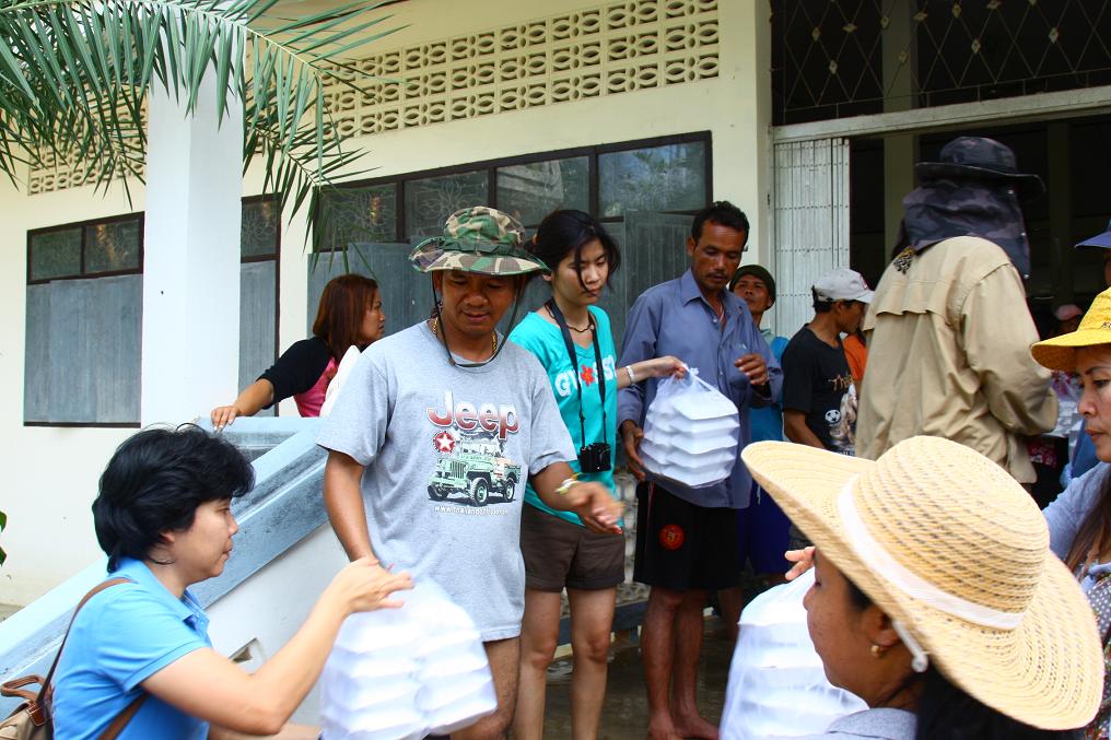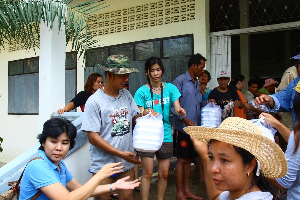 อาทิตย์ที่ผ่านมาก็แบกข้าวสาร กะปิ น้ำปลา ไปแจกที่อินทร์บุรี น้ำยังสูงมาก ต้องใช้เรือสถานเดียว