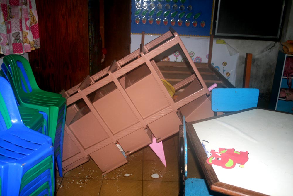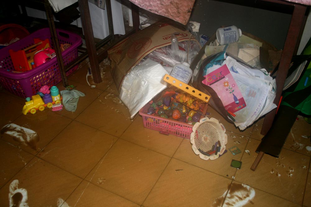 ข้าวของกระจัดกระจายตำราสูญหายไปตามกระแสน้ำ เหลือแต่ชั้นว่างเปล่า