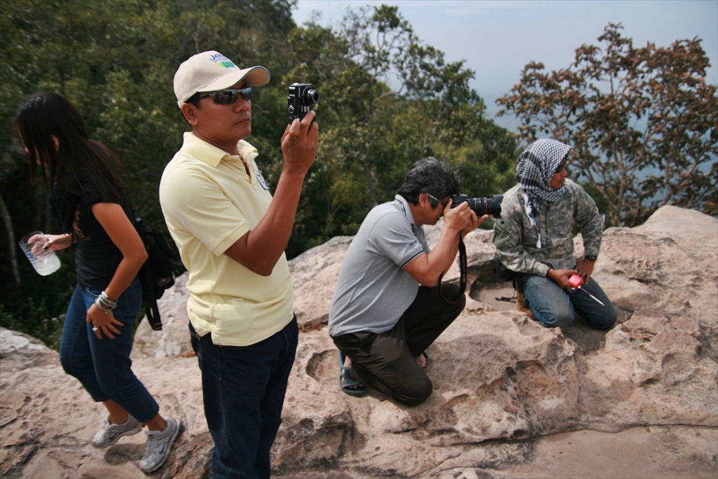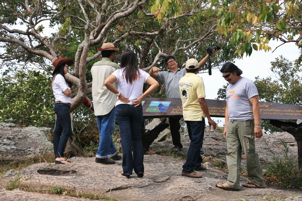 กูรู ด้านหิน ธรณีนี่นี้เป็นพยาน กำลังบรรยายให้นักท่องเที่ยวฟังถึงที่มาของกระเกิดการยุบหรอพองหนอ อิอิ