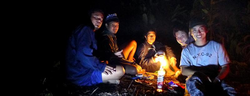 พอกลับมาถึงที่พักลูกหาบกางเต็นท์ หุงข้าว อุ่นกับข้าวไว้รอเรียบร้อย นั่งกินกันดีกว่า