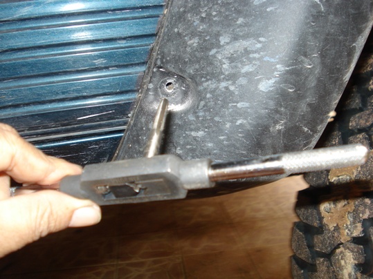 เจาะนำก่อน จะต๊าบทำเกลียวกันก่อนด้วย ขนาด Dia. 3/16 inch. เจาะขยายรูของ screw เดิมของตัวถังรถเรา.