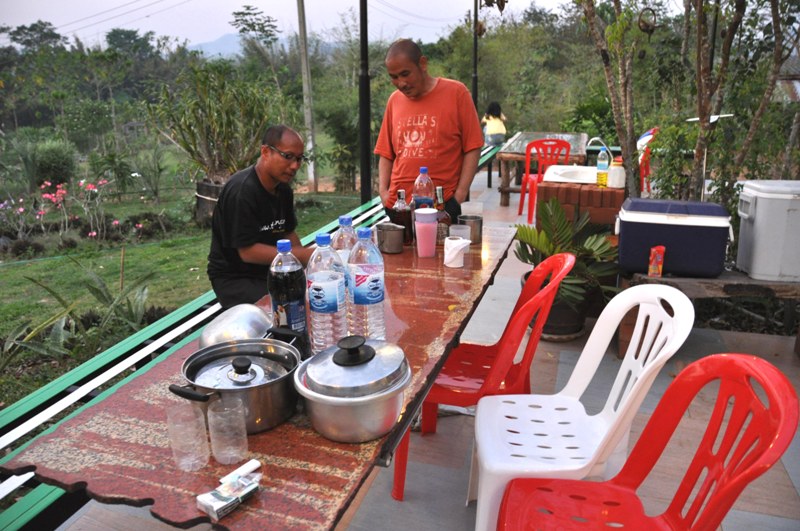 ขึ้นจากน้ำก้อเข้าพื้นที่ข้างบนเตรียมอาหารร้อนๆ .....