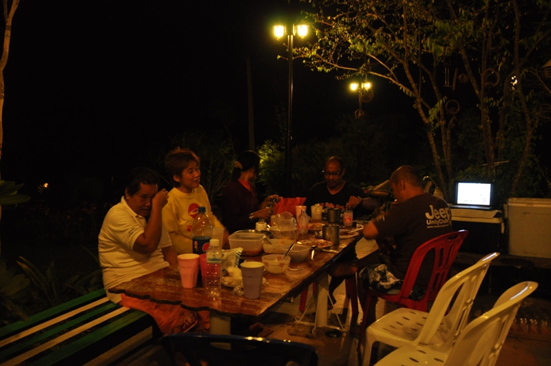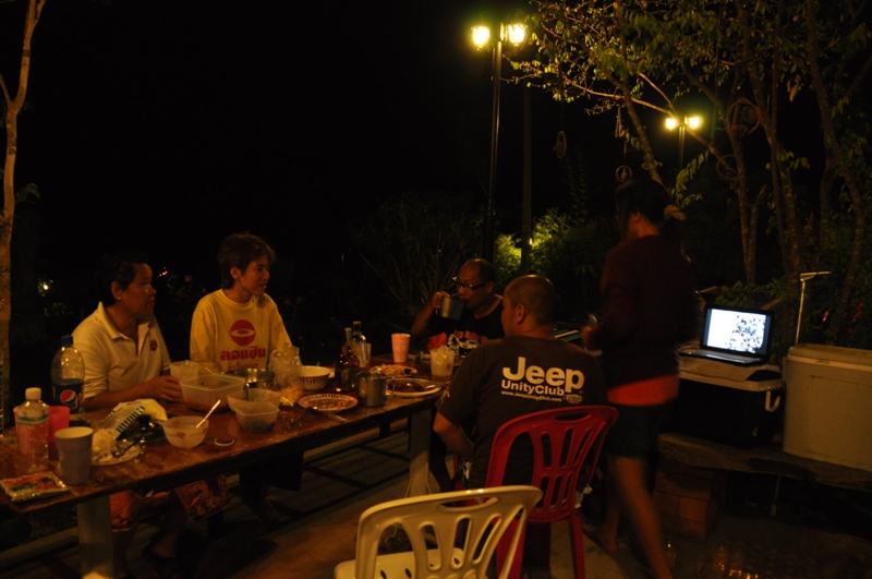 ใช้เวลาที่บ่อคลึงเกือบสองชั่วโมงจึงเดินทางกลับเพื่อตั้งวงเล่า