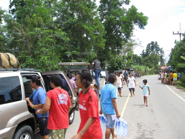 ชี้แจงให้ชาวบ้านฟัง ว่าของบริจาค นั้นบริจาคโดยเงินส่วนตัวของผู้ใจบุญจากหาดใหญ่ มิได้เกี่ยวข้องหรือเป้นงบประมาณภาครัฐแต่อย่างใด บริจาคโดยจิตกุศลเพื่อให้พี่น้อง ที่ประสบกับความเดือดร้อน โดยตรง ถึงมือ ผู้เดือดร้อนจริงๆ ทางทีมเราเป็นเพียงผู้นำมาแจกเทานั้น ..และใคร่ขอความร่วมมือ แจกครอบครัวล่ะ 1 ชุด