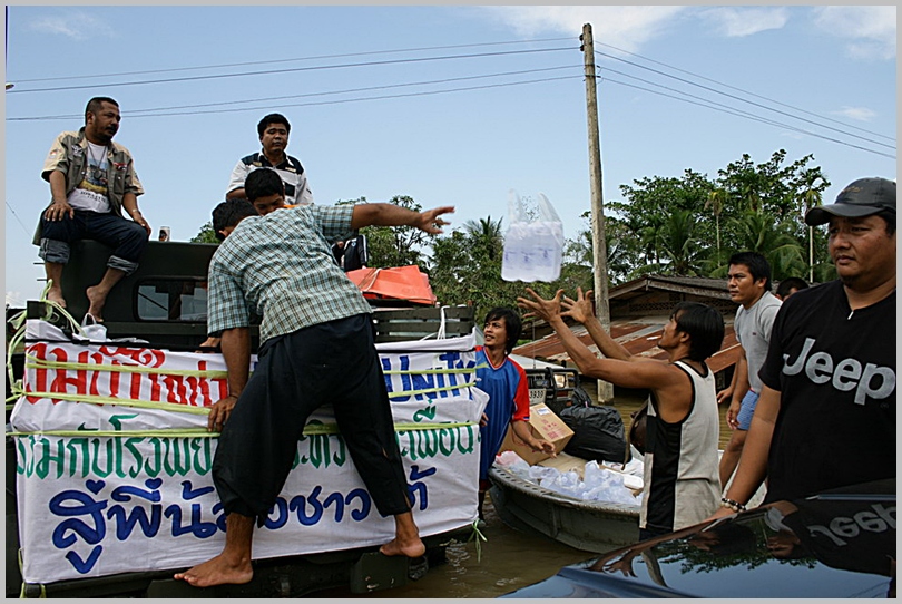 ก่อนหน้านี้ผมได้เข้าพื้นที่อำเภอคีรีรัฐ ที่คีรีรัฐน้ำท่วมสูงเหมือนกันแต่น้ำลดเร็ว ได้รับการช่วยเหลือจากเพื่อนสมาชิกจิ๊บและพี่น้องจิ๊บชลบุรี ซุ้มยาดอง นำข้าวสารไปแจกให้กับพื้นที่น้ำท่วม