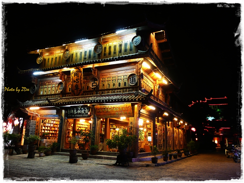 กลับมาที่พักที่เมืองเก่าลี่เจียง ขวามือเป็นโรงแรมที่พักเหมือนโรงเตี้ยมในหนังจีนเลย