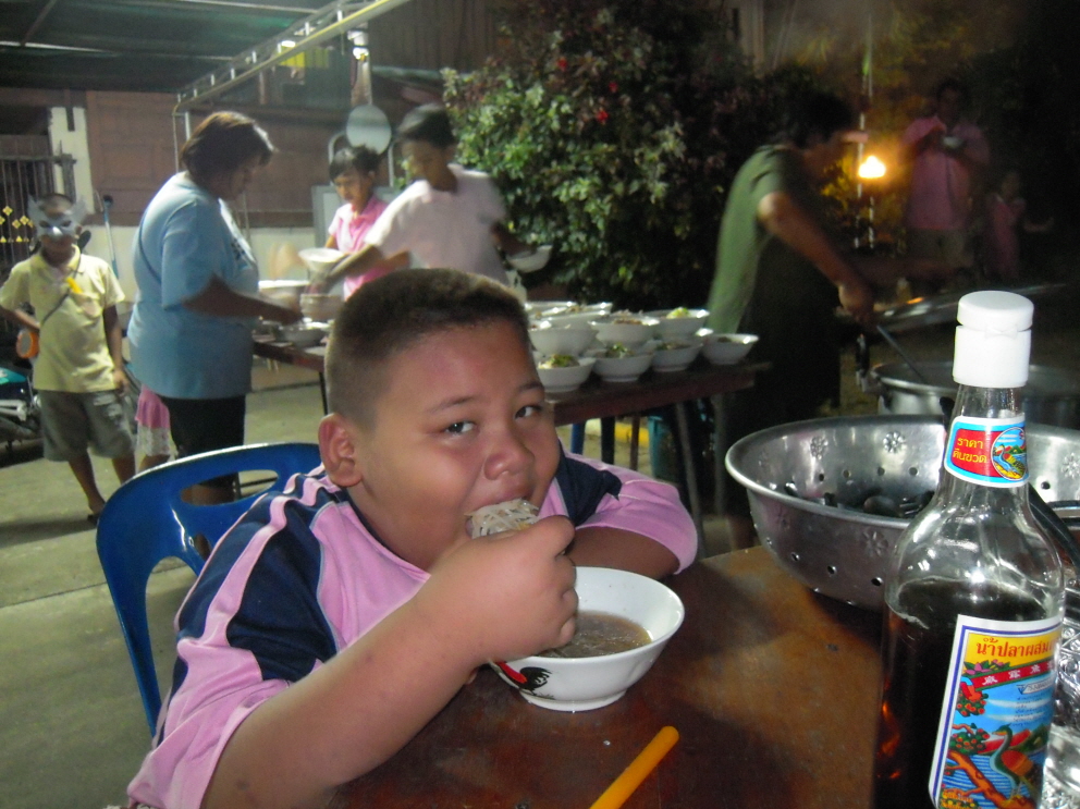 เกือบเที่ยงคืนแล้ว น้าผู้ใหญ่ยังอยู่คอยต้อนรับอย่างดี ดูจากร่องรอยของโต๊ะข้าง
