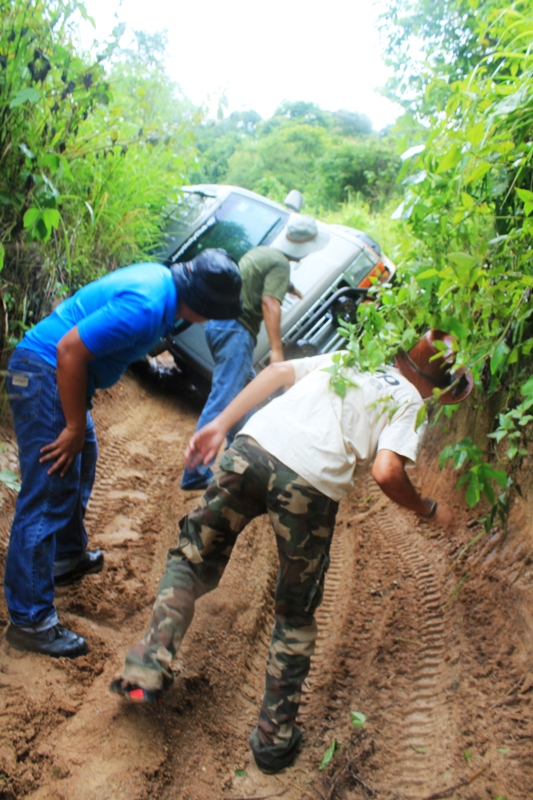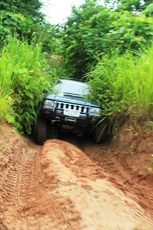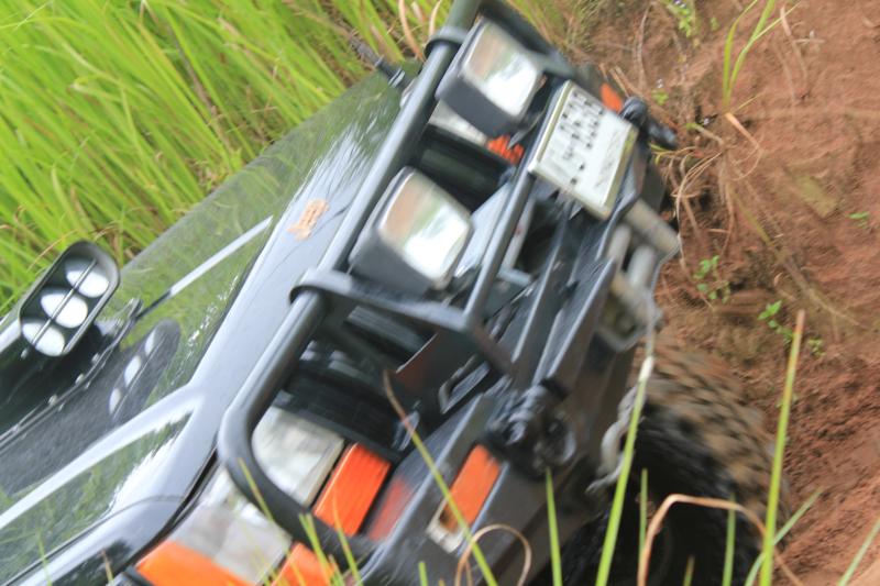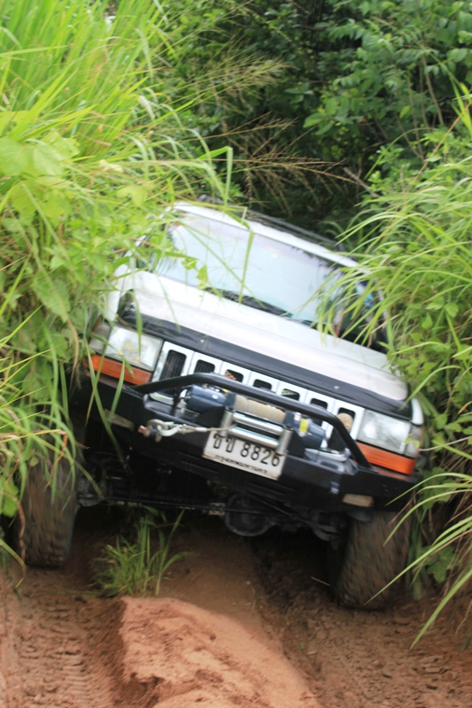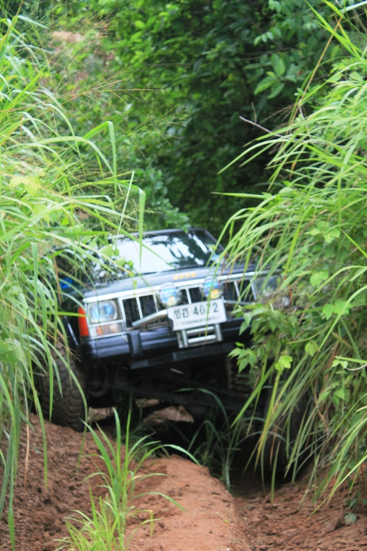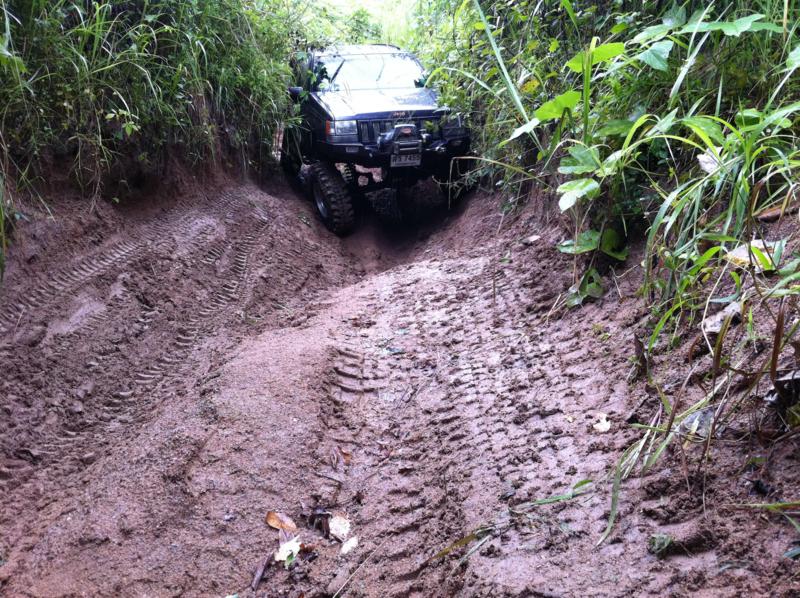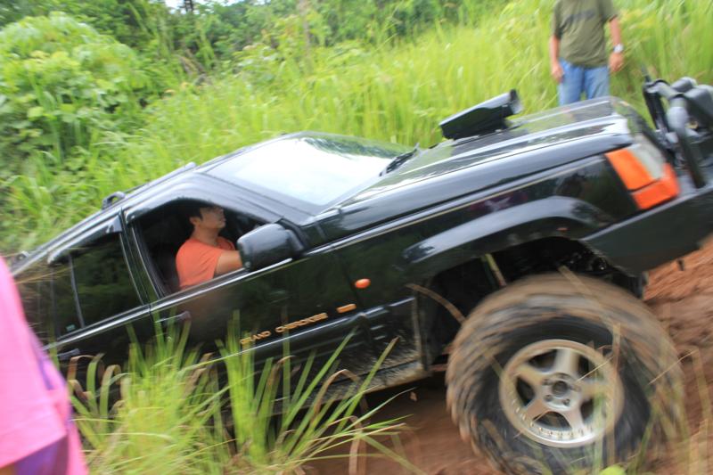 พลาดไปเรียบร้อย เนื่องจากน้ำหนักตัวรถ และ เบรคที่เบรคไม่ค่อยอยู่ พี่ใครสอนใช้น้ำมันในการออฟโร้ด และ น้ำมันเหลือน้อยมาก (1 ขีด) พอรถหัวปักอยู่ในท่านั้นนาน น้ำมันดูดไม่ถึง มุมขวาด้านหลังพิงไปกับเนินเรียบร้อย