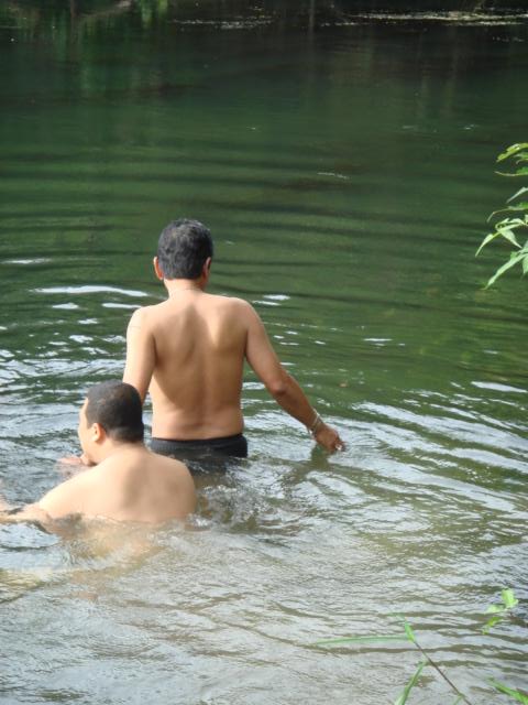 รายงานสด.....ขณะนี้ลงเล่นน้าเอ้ย น้ำสายน้ำไหลเย็นเห็นหัวใจ.....ข้างบนมีน้ำเย็นๆรินรอริมตลิ่ง พร้อมกับแกล้มรสอร่อย กุ้งแม่น้ำแช่น้ำปลา....ปลาชะโดผัดสมุนไพร....