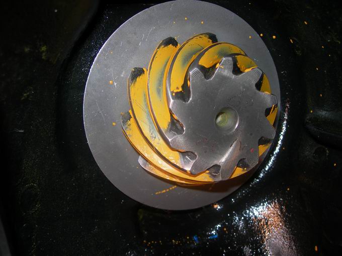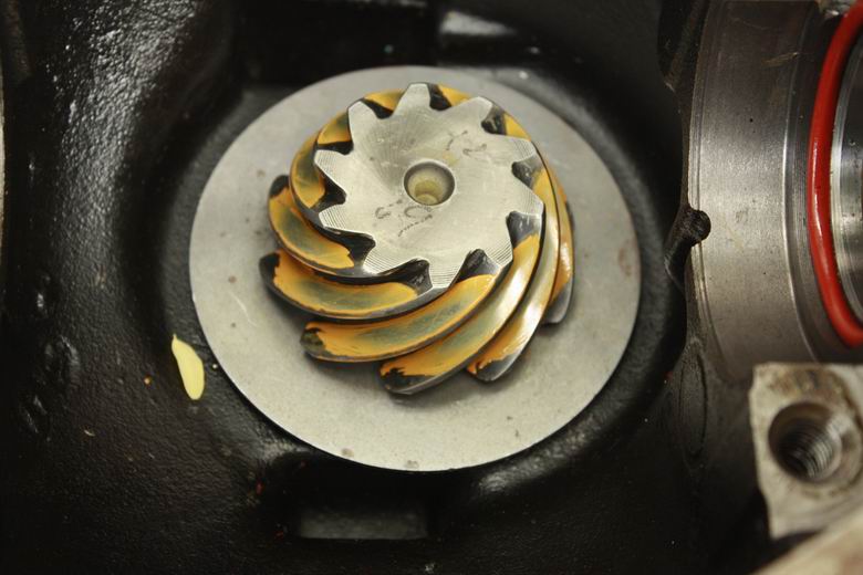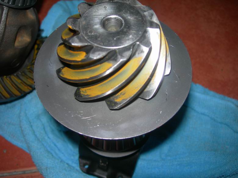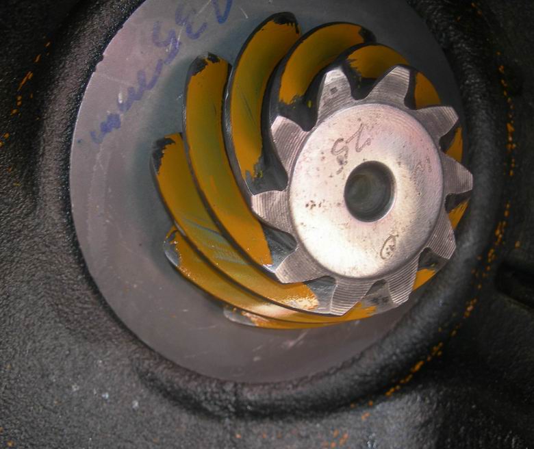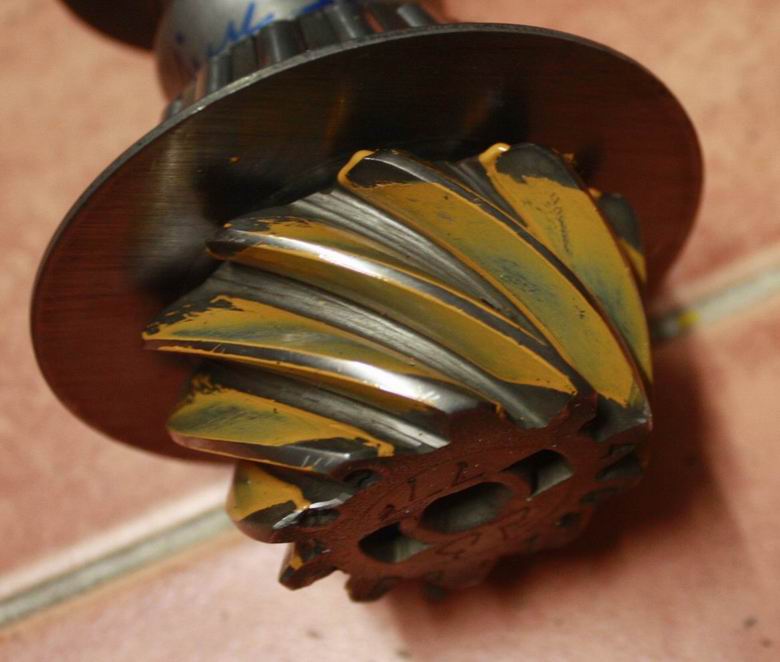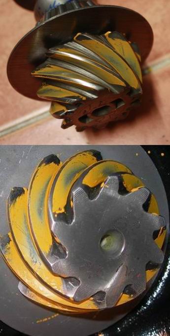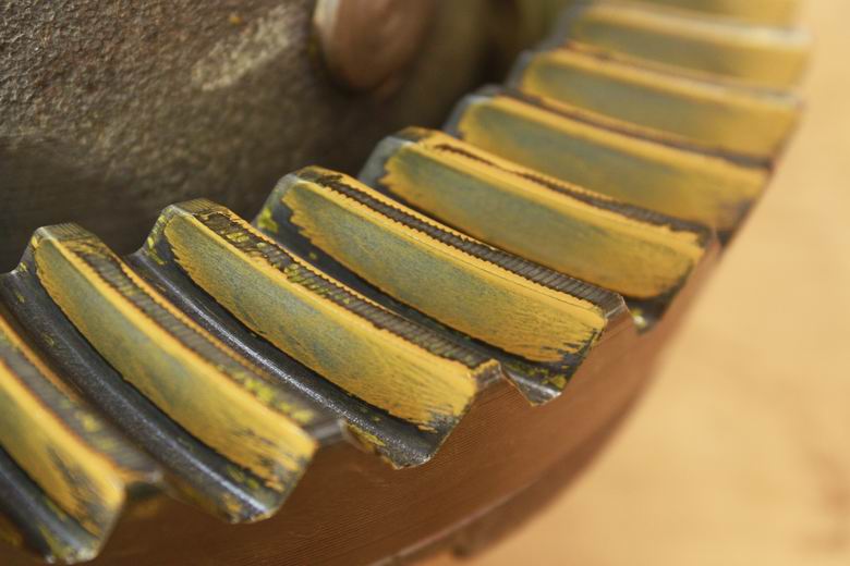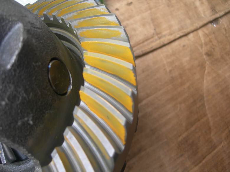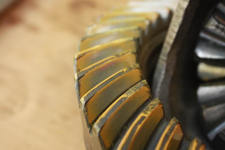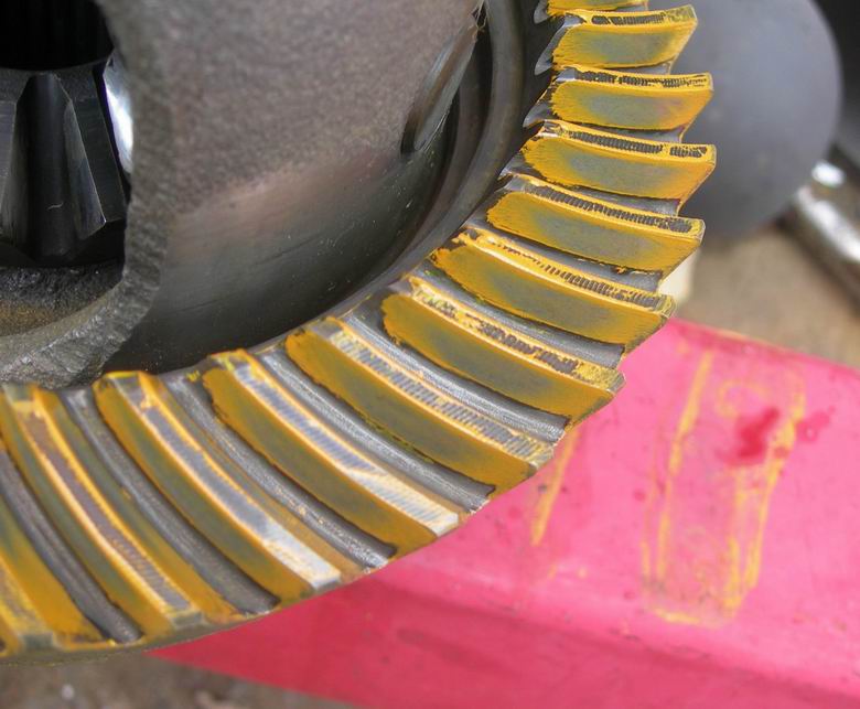 ที่เฟืองเดือยหมูมีรอยสัมผัสไม่เสมอกันเห็นได้อย่างชัดเจน..