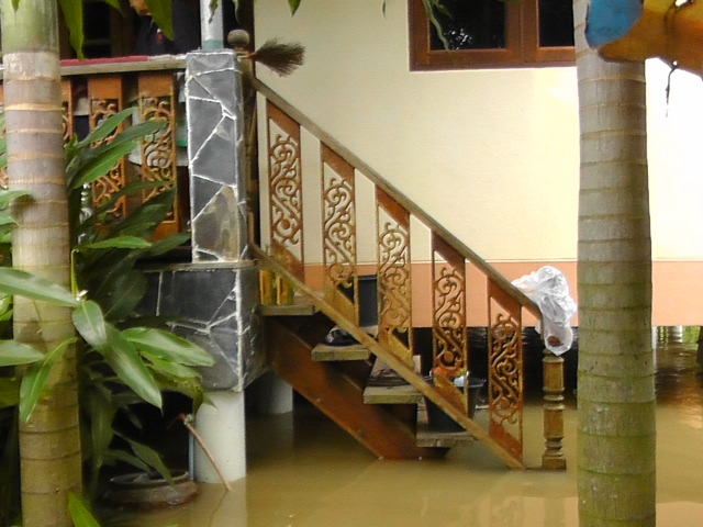 บ้านที่อยู่ปัจจุบันก็เหลืออีก1เมตรก็จะถึงพื้นบ้าน ต้องรอลุ้นว่าฝนจะลงมาอีกหรืกเปล่า แล้วก็อ่างเก็บน้ำแควระบมสียัดจะปล่อยน้ำมามั้ย