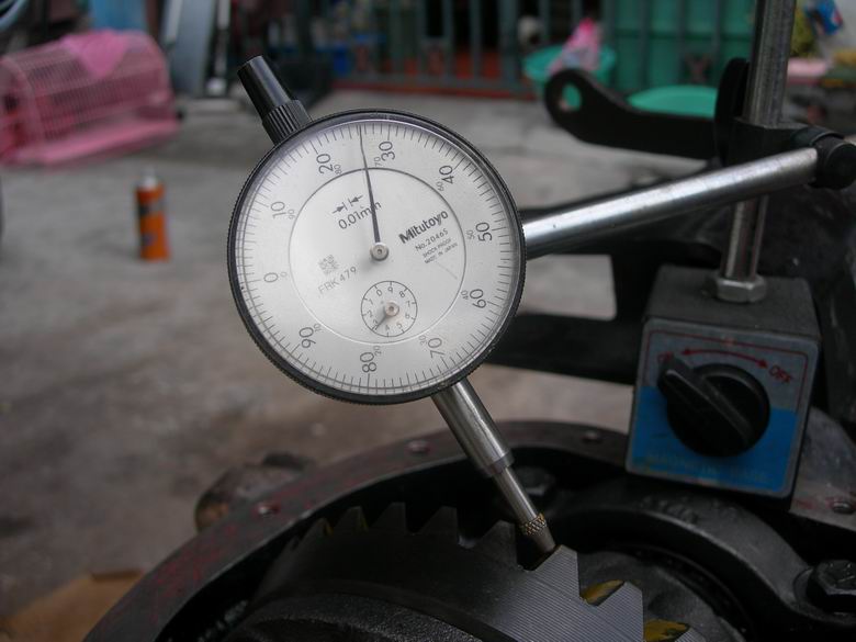 ทดสอบระยะคลอน ตามที่ระบุไว้ที่เฟืองบายสี 0.006" (0.006 x 25.4 = 0.152 mm.)