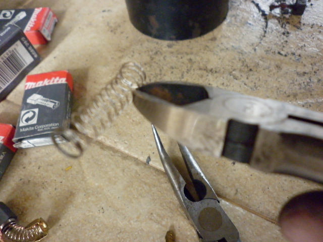ก็มาตัดแปลง ตัดแต่ง spring กันก่อนโดยตัดให้สั้นลงหน่อยหพร้อมกับพับแต่งปลายให้โค้งเข้ารูปเล็กนิดๆ เพื่อจะไม่ติดร่องภายในซองแปรงถ่าน..