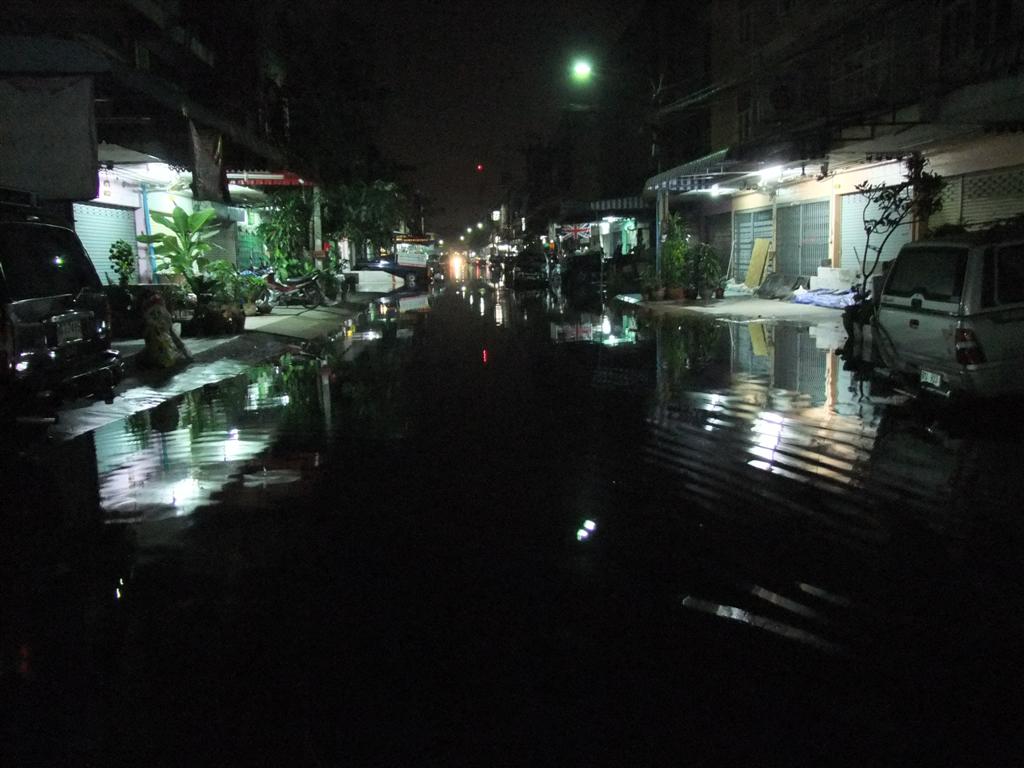 น้ำยังไหลมาเรื่อยๆ....แต่ยังไม่ท่วมถนนหน้าบ้านแต่ไหลออกทางเมืองทอง แจ้งวัฒะ 14 ท่วมแล้ว...ครึ่งรถมอไซค์..หมู่บ้านบูรพา 14 ครึ่งคันรถ...รถเล็กไม่สามารถขับผ่านได้...