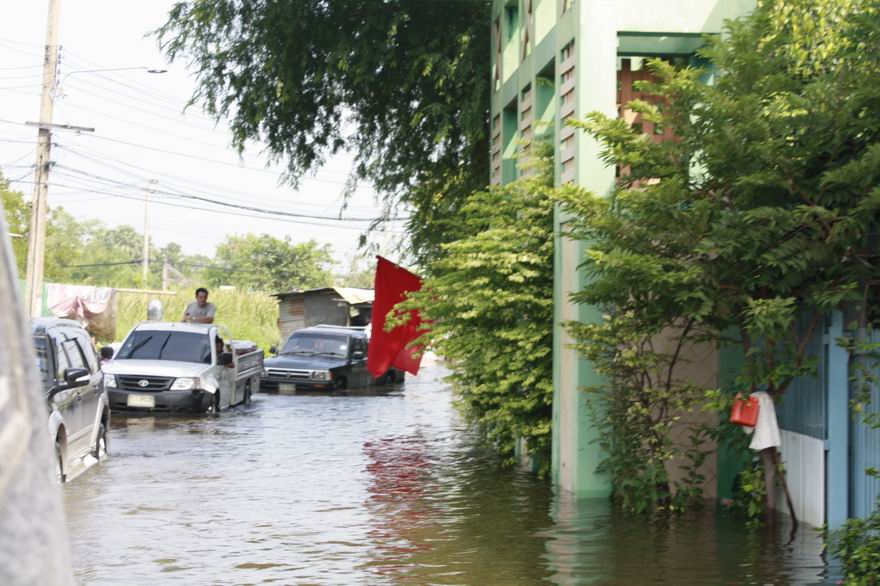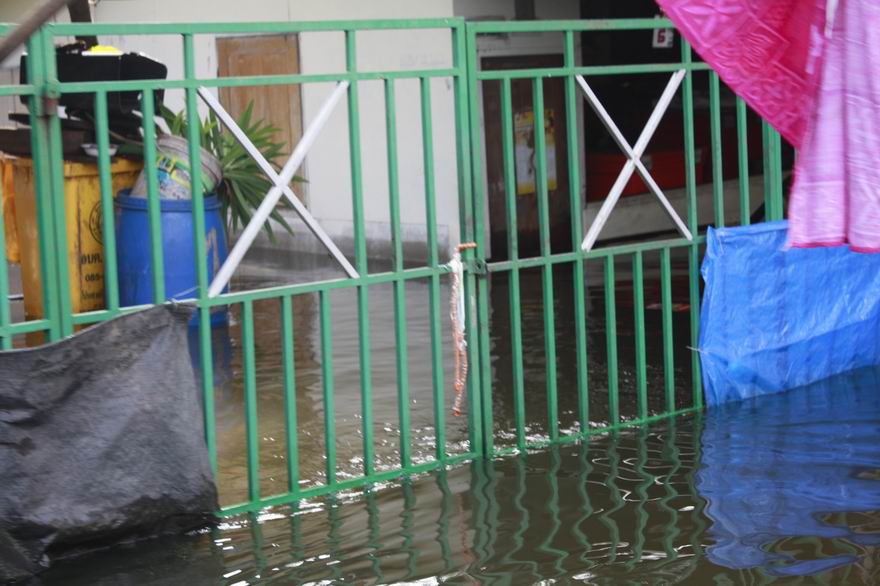 ผมเข้าไปดู เมื่อ 17.00 น. ระดับน้ำทางเข้า 40 เซ็นติเมตร. เข้าไปตรวจสอบว่ารั้วของหมู่บ้าน