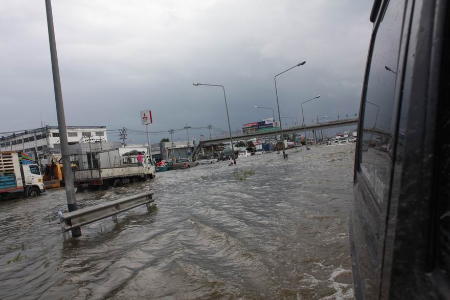 น้ำเต็มทุกช่องจราจร รถเล็ก ผ่านได้ยากมามาก