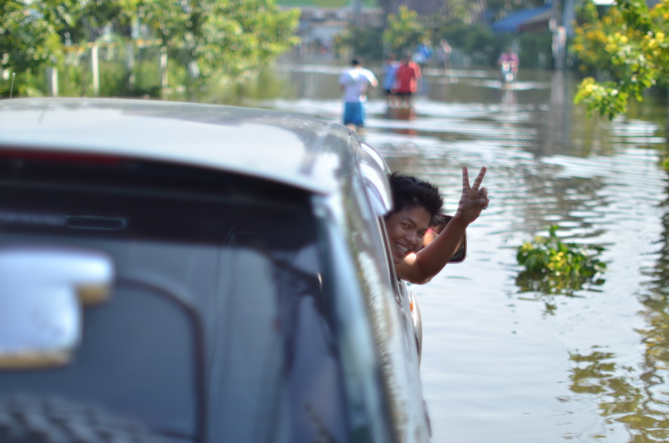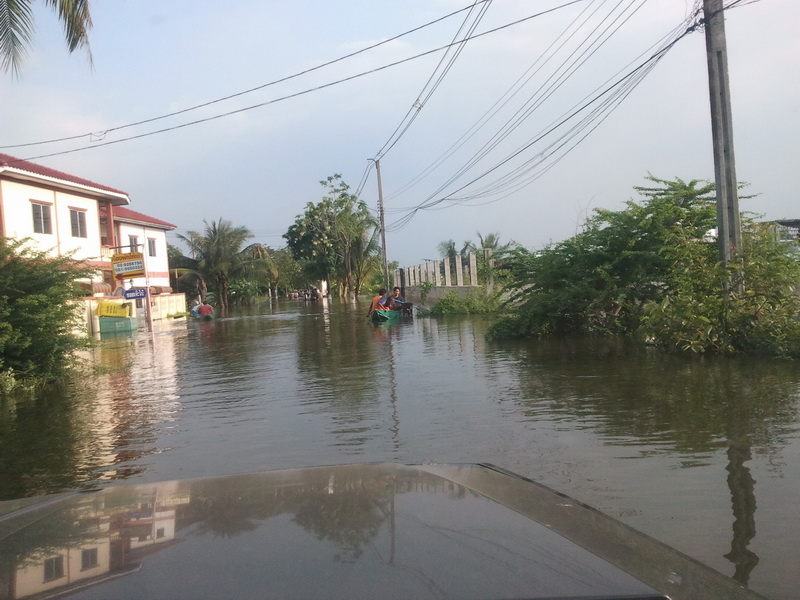 ตอนบ่าย อาการ เริ่ม น่าเป็นห่วง แต่ รถก็ไม่สามารถ ออกมาได้แล้ว ติดกำแพงกันน้ำ ของหมู่บ้านเอง ไรเดอร์เห็นท่าไม่ดี รีบเอารถ ออกไปก่อน เลยรอด