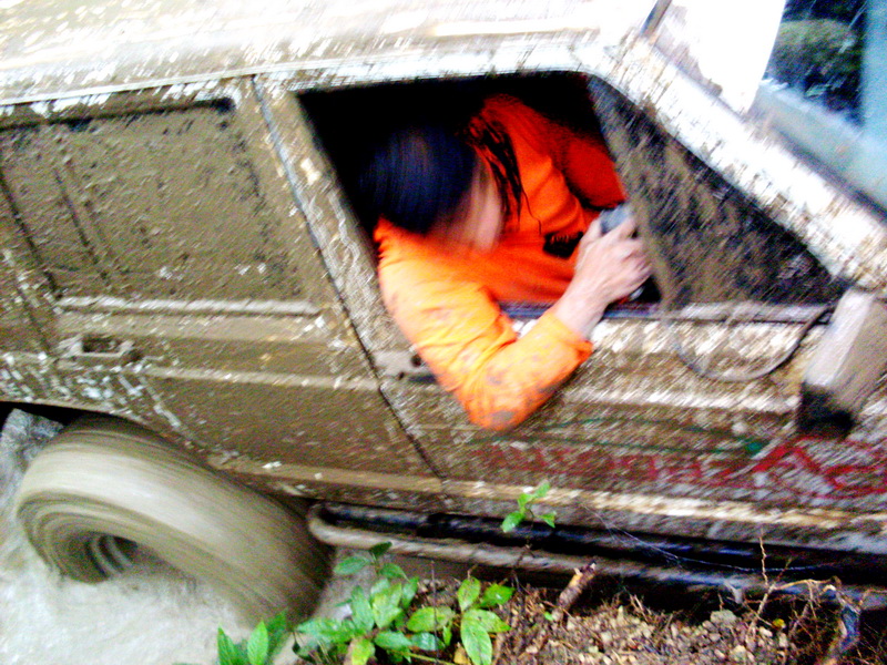 จุดนี้ต้องดึงทุกคันไม่งั้นแถเข้าพงหญ้า