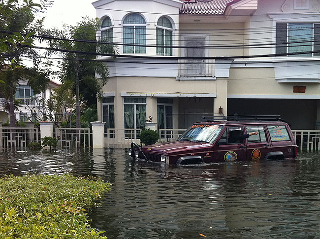 เสร็จจากมอบข้าวกล่องแล้ว ผมไปรับเพื่อนที่ซอยจรัลฯ65 ต้นซอยน้ำท่วมครึ่งแข้ง ท้ายซอยเกือบออกตั้งฮั่วเส็งก็ครึ่งแข้งจนเบาะเปียกเลย เสียดายที่ผมลืมวาง I-phone ไว้ที่ๆวางแก้วเจอน้ำท่วม เลยไม่ได้เก็บภาพตอนขับน้ำระดับอกมาฝาก รถผมยก 5" ยาง 265/75/16 สูงใกล้เคียงกับ XJ ของพี่แหม่ว แต่มันประทับใจตรงที่ของผมเครื่องดีเซลมี Snorkel แต่กระทิงแดงพี่แหม่วเบนซิล ล้วนๆ เยี่ยมจริงๆ ไม่ลองไม่รู้ 555